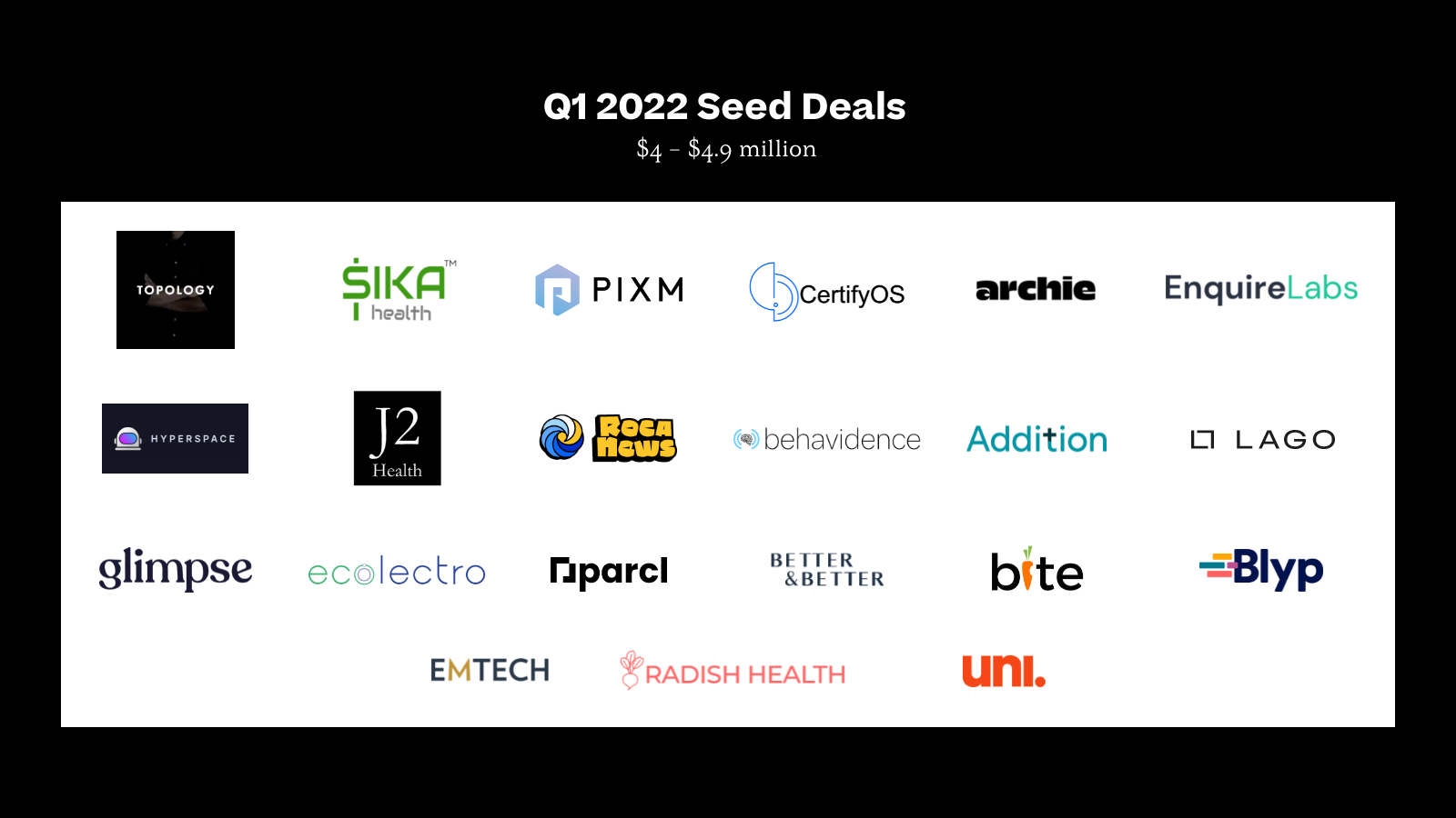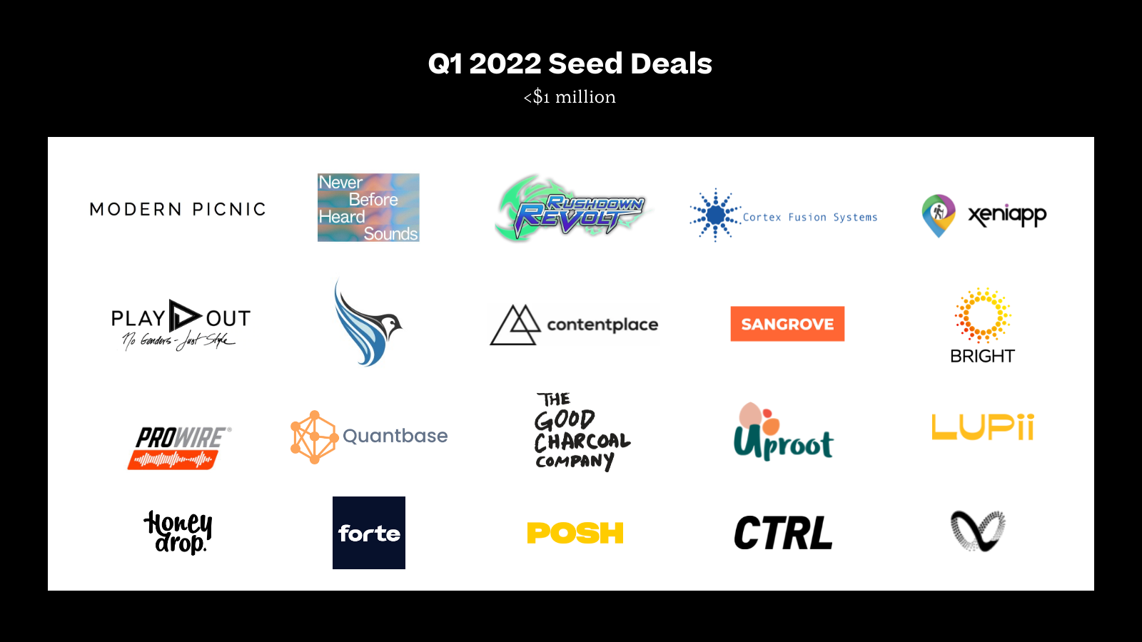 Here are some of the trends within that wider story that particularly stood out to our team—and keep scrolling for complete snapshots of all the companies that announced seed rounds this quarter, based on Crunchbase, PitchBook, and our own proprietary knowledge of deals.