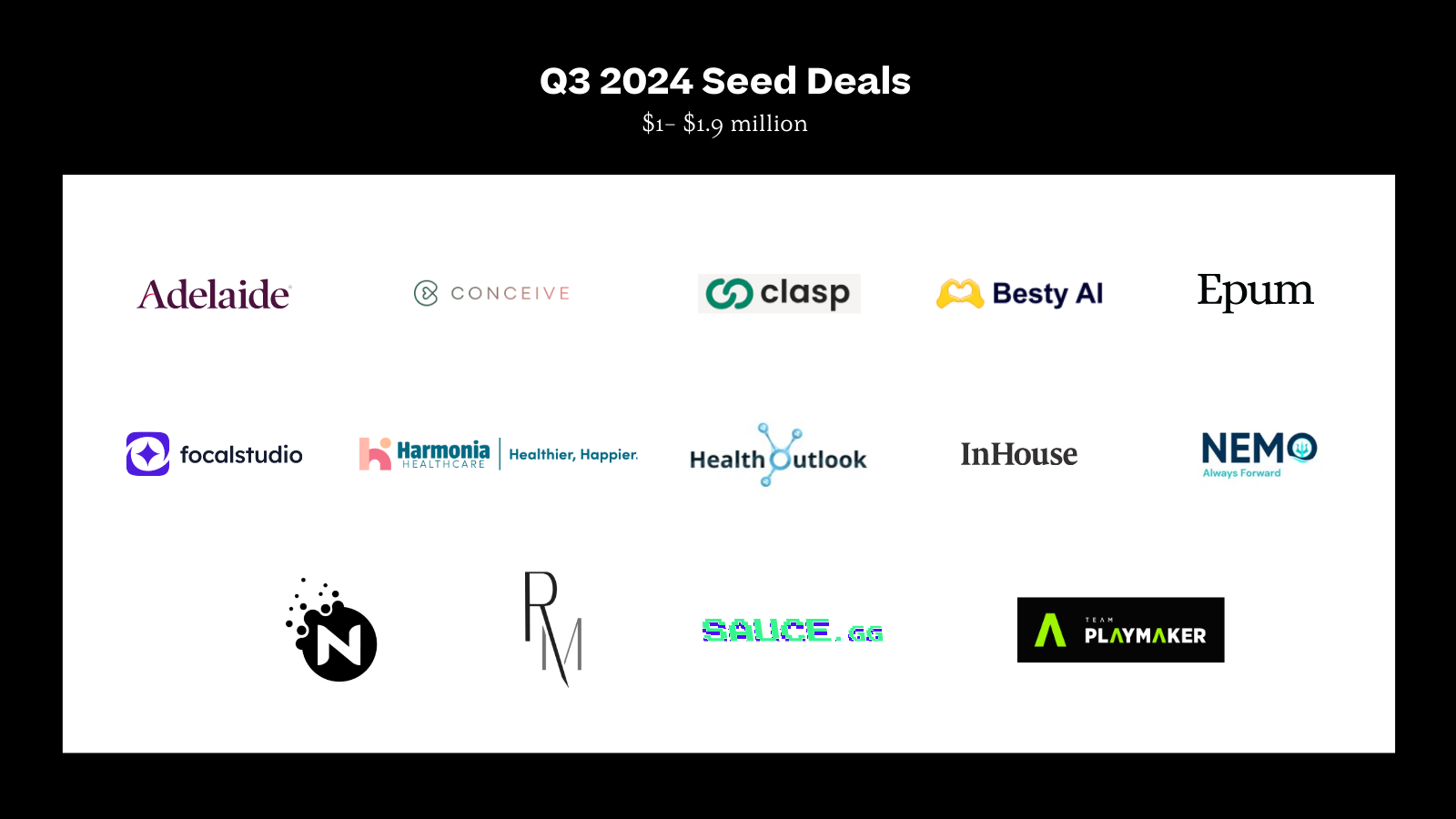 In Q3, AI-powered healthcare workforce management platforms are gaining significant traction as the industry confronts persistent staffing inefficiencies and fragmented solutions. These platforms not only address the operational complexities of managing an overextended workforce, but also focus on solving financial and human capital management struggles. M7, a new-age nurse operations platform, raised $4M from First Round to continue building out its solution which provides automatic shift scheduling, real-time operational insights, and data-driven staffing metrics. This technology enables healthcare organizations to optimize their staffing levels and also goes a step deeper in offering nurse benefits management, financial forecasting, and career development opportunities. Similarly, Arya Health secured $4M from Twelve Below to enhance its workforce automation platform, designed to streamline the management of healthcare staff and increase operational efficiency. Arya’s platform integrates all types of workforce data to equip managers with comprehensive workflows for managing shifts, payroll, and retaining employees. Both companies are tapping into the growing demand for platforms that improve staffing flexibility and efficiency in healthcare, reflecting a broader trend toward technology-driven workforce solutions.