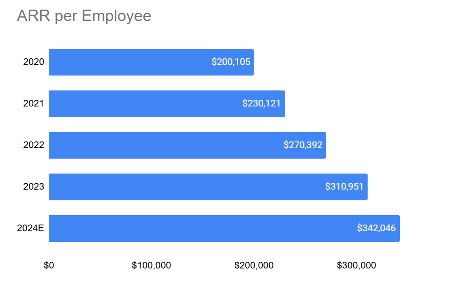 In the summer of 2022 the team at Battery Ventures championed “APE”–ARR per employee–as the new North Star metric for SaaS companies. There is no right or wrong answer for your APE target; the name of the game is really just driving continuous improvement over time–and if you’re on the path to profitability, devising a target based on your breakeven APE.