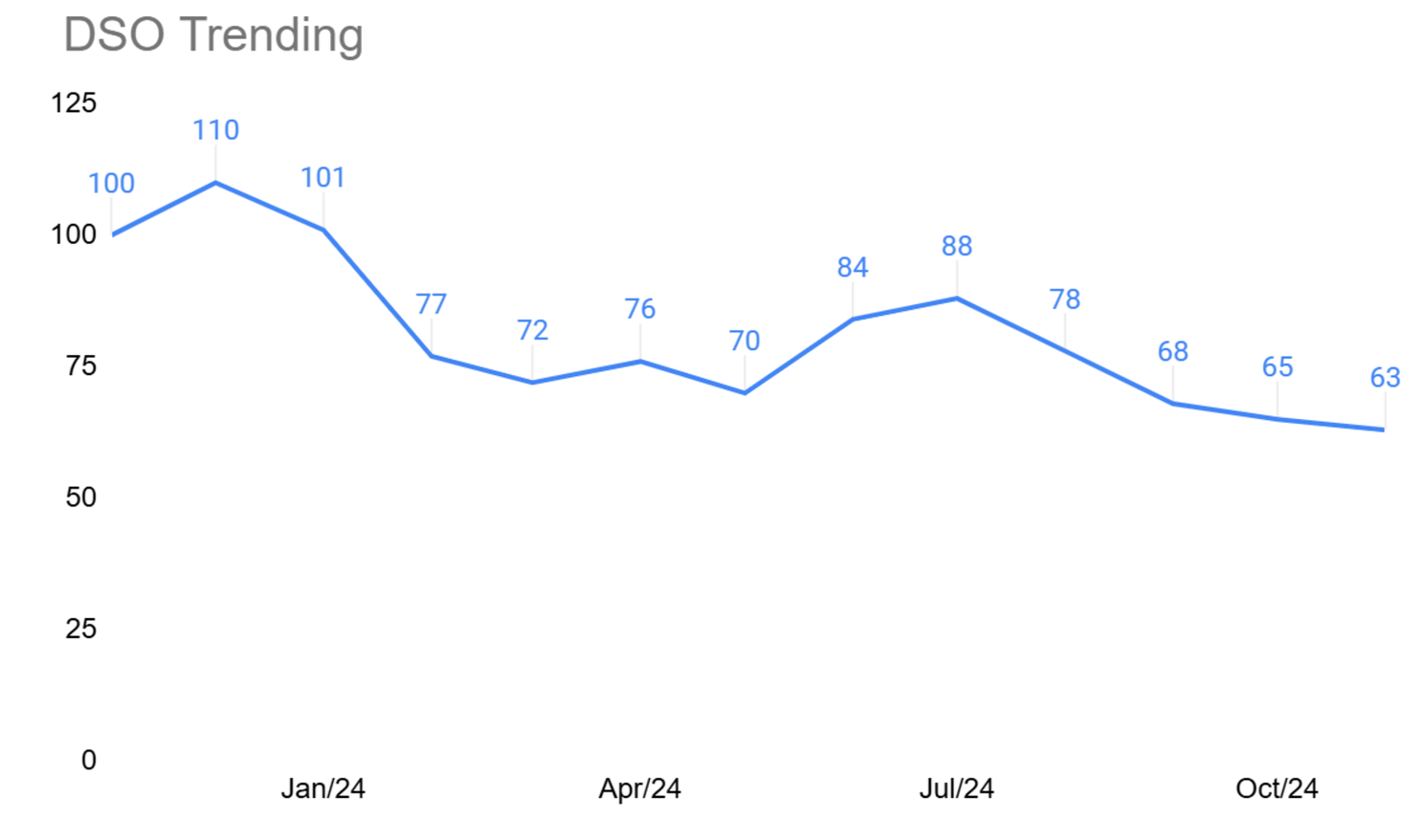 The chart above tracks month-over-month improvements in DSO. Company X has significantly improved their ability to collect cash from customer invoices faster, perhaps on account of launching automated invoice reminders or a similar tactic.