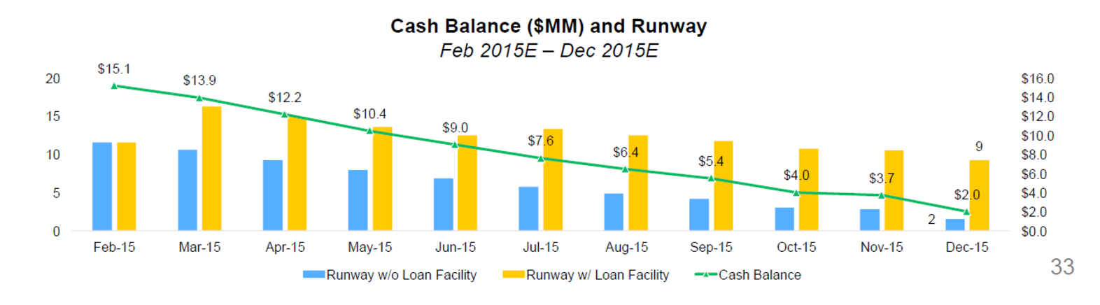 Cash runway is everything for startup companies, so this metric should be front and center in every board deck. The chart below is one used early on at Sailthru to walk investors through our monthly cash balance and overall runway (both with and without our loan facility).
