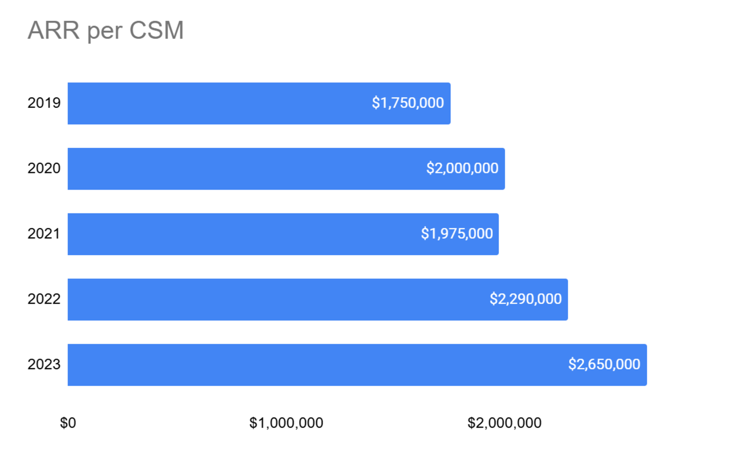 ARR load per CSM is a straightforward efficiency metric for the CSM team; as a company grows, they must find leverage that enables each CSM to manage a larger book of business.