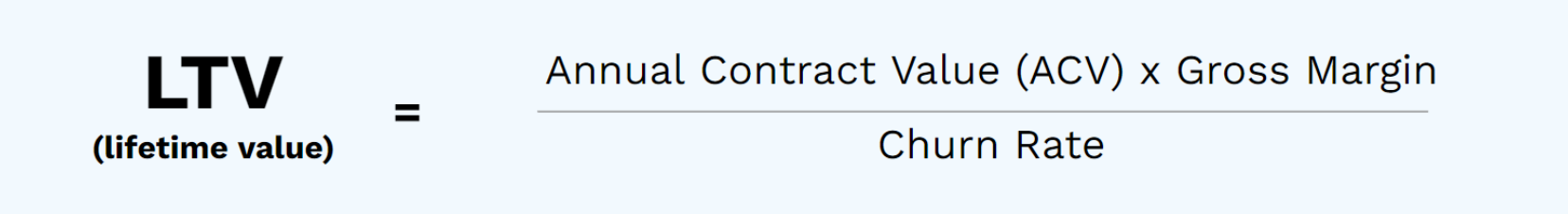 While the LTV formula is a relatively simple one, I am constantly amazed by how few leaders really have a command for how it works. As you’ll note below, there are three core inputs that drive LTV: average annual contract value (ACV), gross margin, and churn.