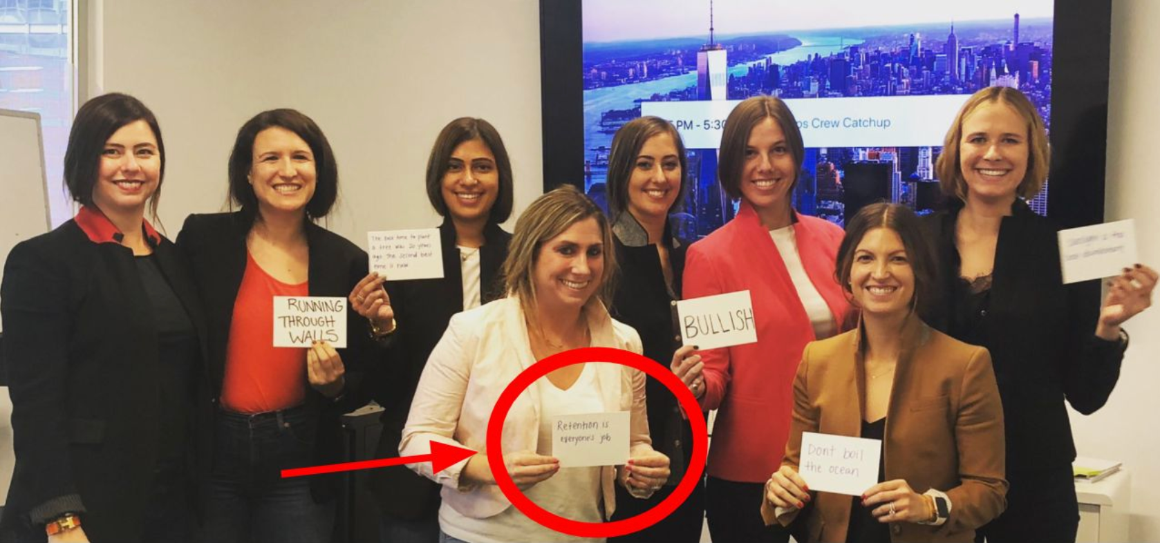 I regularly preached the gospel of “retention is everyone’s job” while I was a CRO. For Halloween 2019, a number of my direct reports dressed up as me for Halloween and carried signs with some of my “-isms” – check out the one that is front and center! Senior leaders, it is on YOU to set this tone for your teams.
